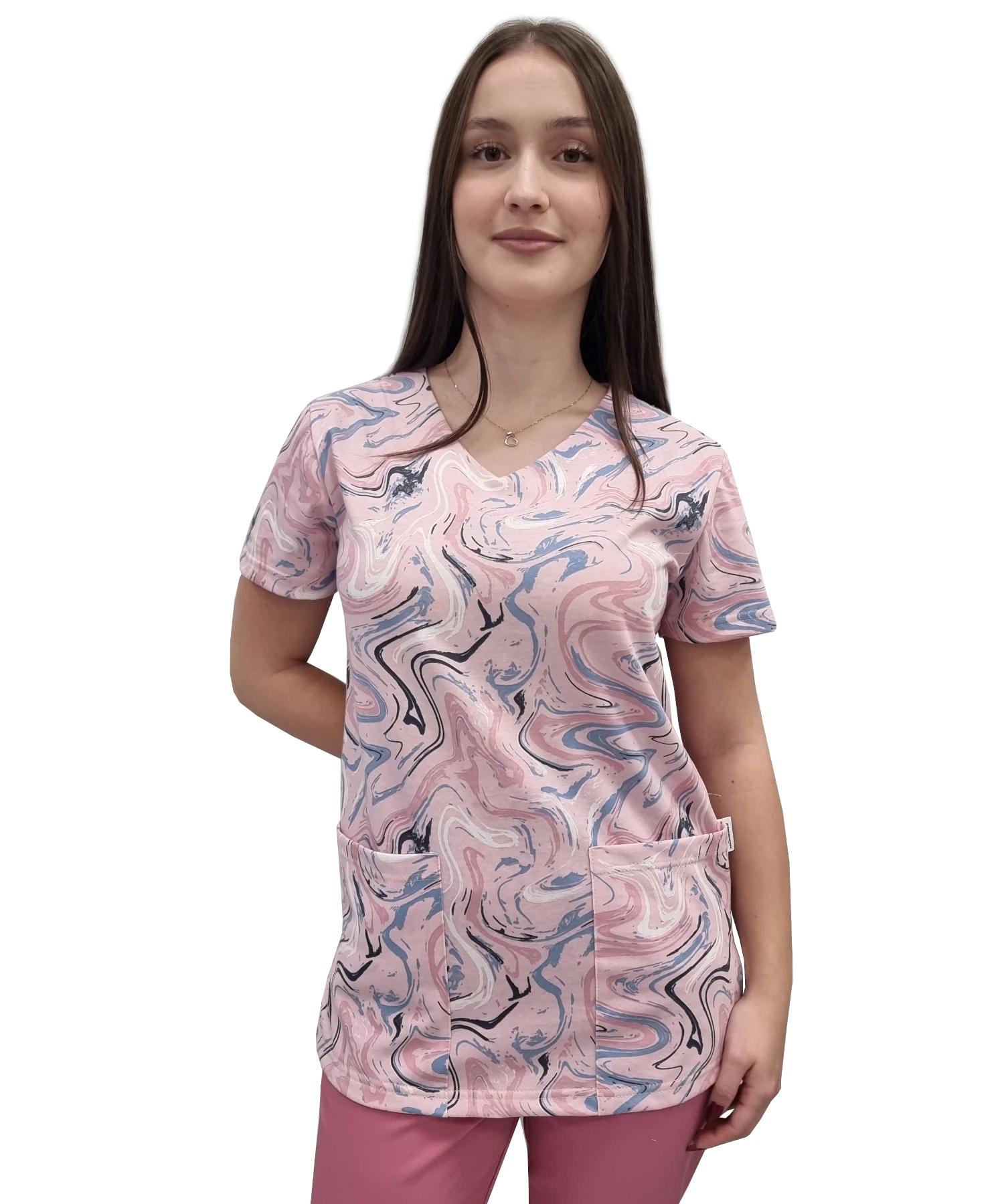 Bluză medicală pentru femei cu modele – 100% bumbac elastic, modelul W15