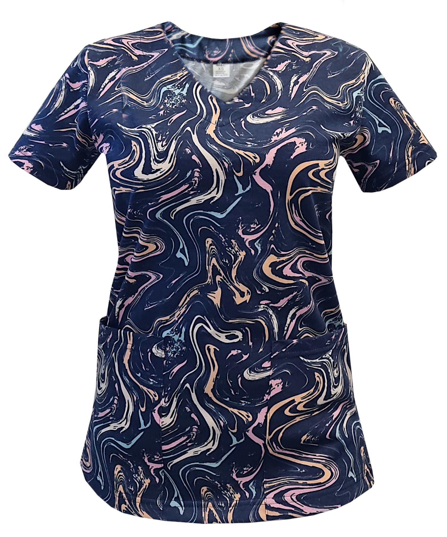 Bluza medicală de damă cu modele - 100% bumbac elastic, modelul W16