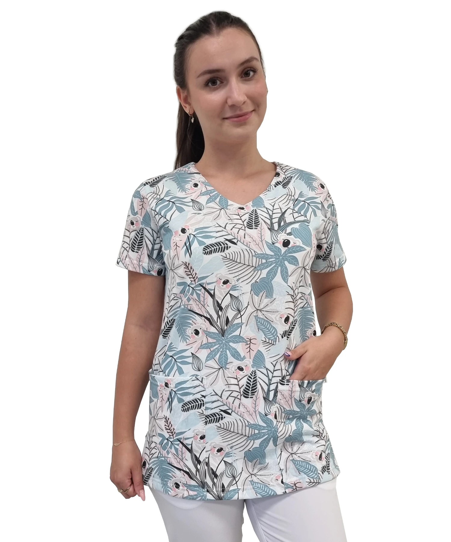 Bluză medicală pentru femei cu modele - 100% bumbac elastic, model W7