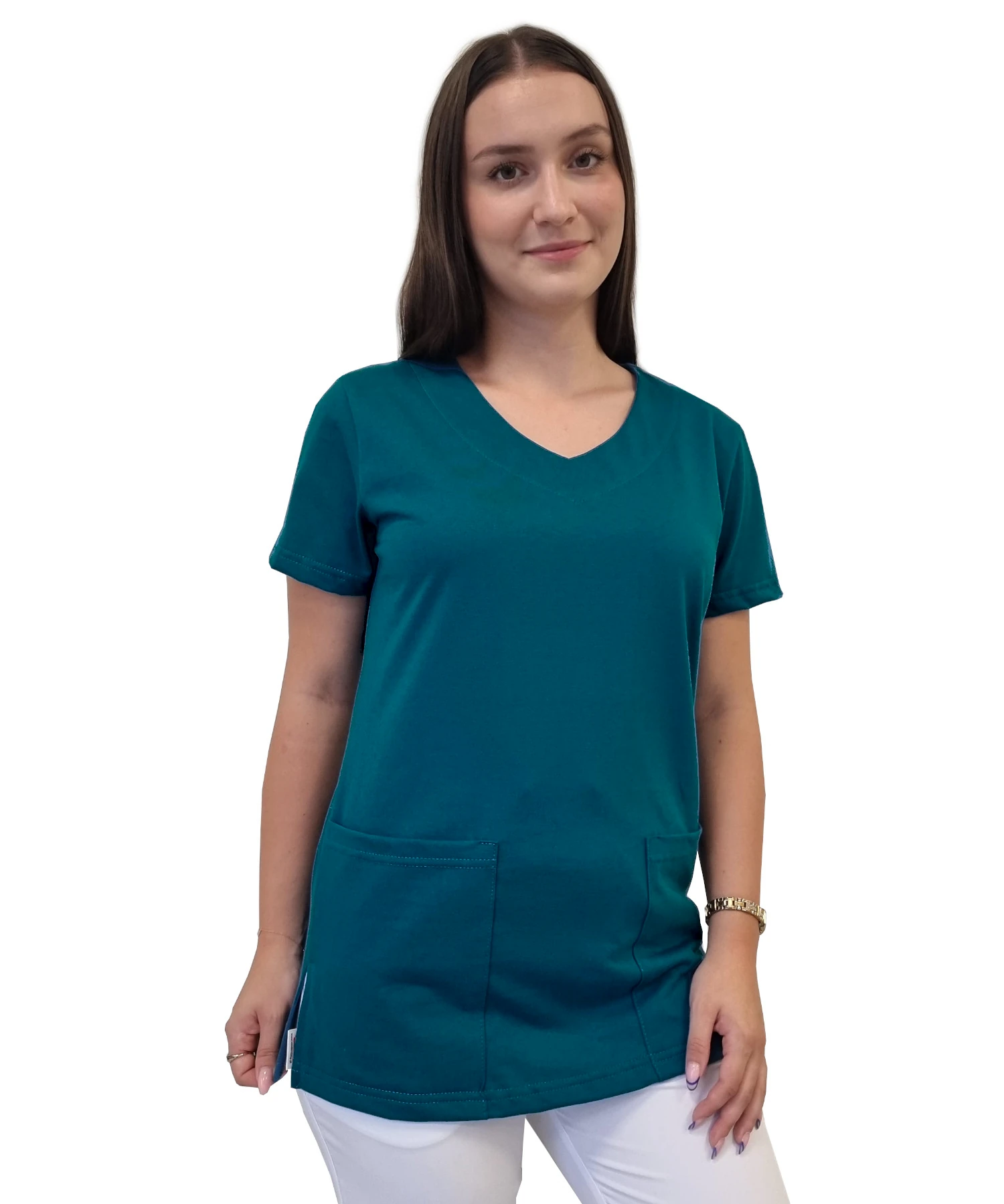 Hanoracul din colecția ELASTIC BLOOM este unul dintre articolele must-have din garderoba fiecărei doamne care lucrează în domeniul medical . Este confecționat din bumbac moale 100% tricotat. Bluza este elastică, respirabilă și plăcută pentru piele. Ea are două buzunare adânci la înălțimea șoldurilor și un decolteu în V. Materialul 140g/m2 din care este confecționată bluza, este ideal pentru zilele care necesită multă activitate fizică la locul de muncă, asigurând un confort ridicat de utilizare datorită permeabilității aerului. elasticitatea țesăturii vă va permite să lucrați confortabil și să vă potriviți corpului în fiecare zi.