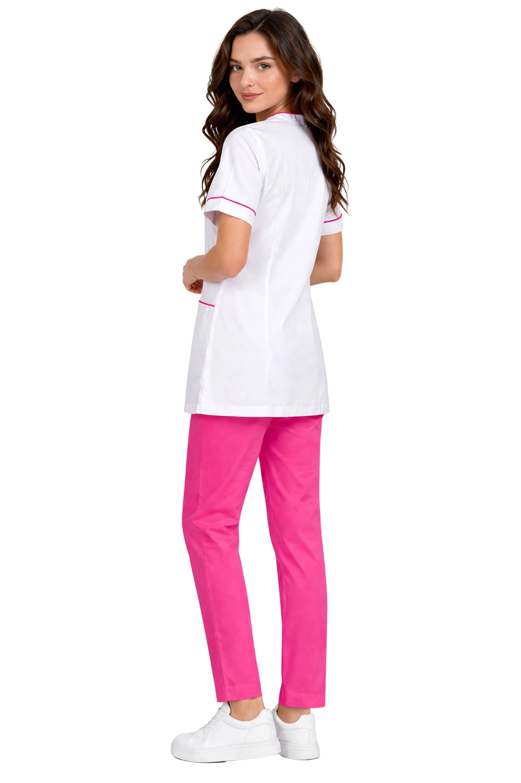 Set medical de damă alb - jachetă și pantaloni PHARMACY COMFORT este alegerea perfectă pentru profesioniștii din domeniul medicinei și cosmeticii. Setul nostru unic combină eleganța cu funcționalitatea, oferind confort în timpul muncii de zi cu zi. Jacheta se încheie în față, cu un finisaj estetic, se potrivește perfect cu pantalonii comfortabili de tip cigarette, care subliniază silueta. Conceput pentru farmacii, farmaciști, opticieni și angajați de la înregistrare, uniforma noastră va fi utilă și pentru asistente medicale, cosmeticiene și frizeri. Alegeți o ținută confortabilă și stilată, care vă va ușura provocările zilnice!