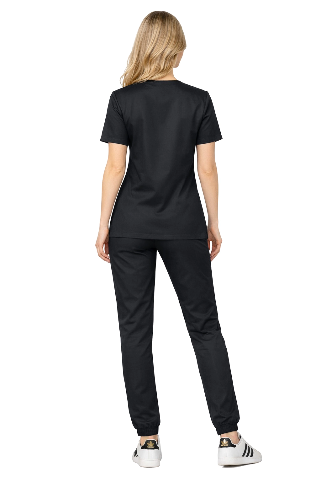 Setul medical pentru femei FLEX în culoare neagră este o propunere pentru femeile care apreciază combinația de stil, confort și funcționalitate. Setul se remarcă prin designul modern, inspirat de moda de stradă - combină un aspect profesionist cu confortul caracteristic al îmbrăcămintei sportive.