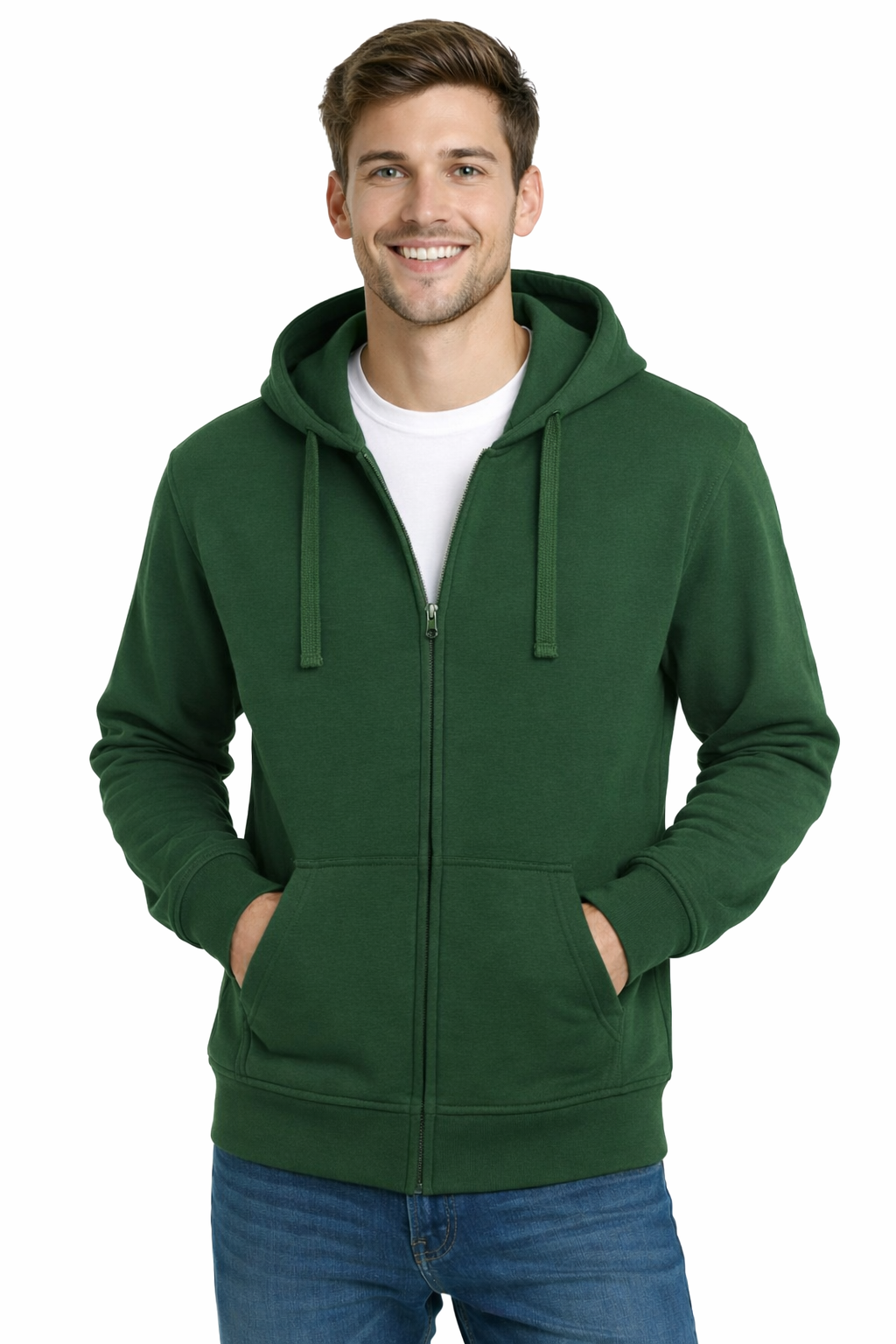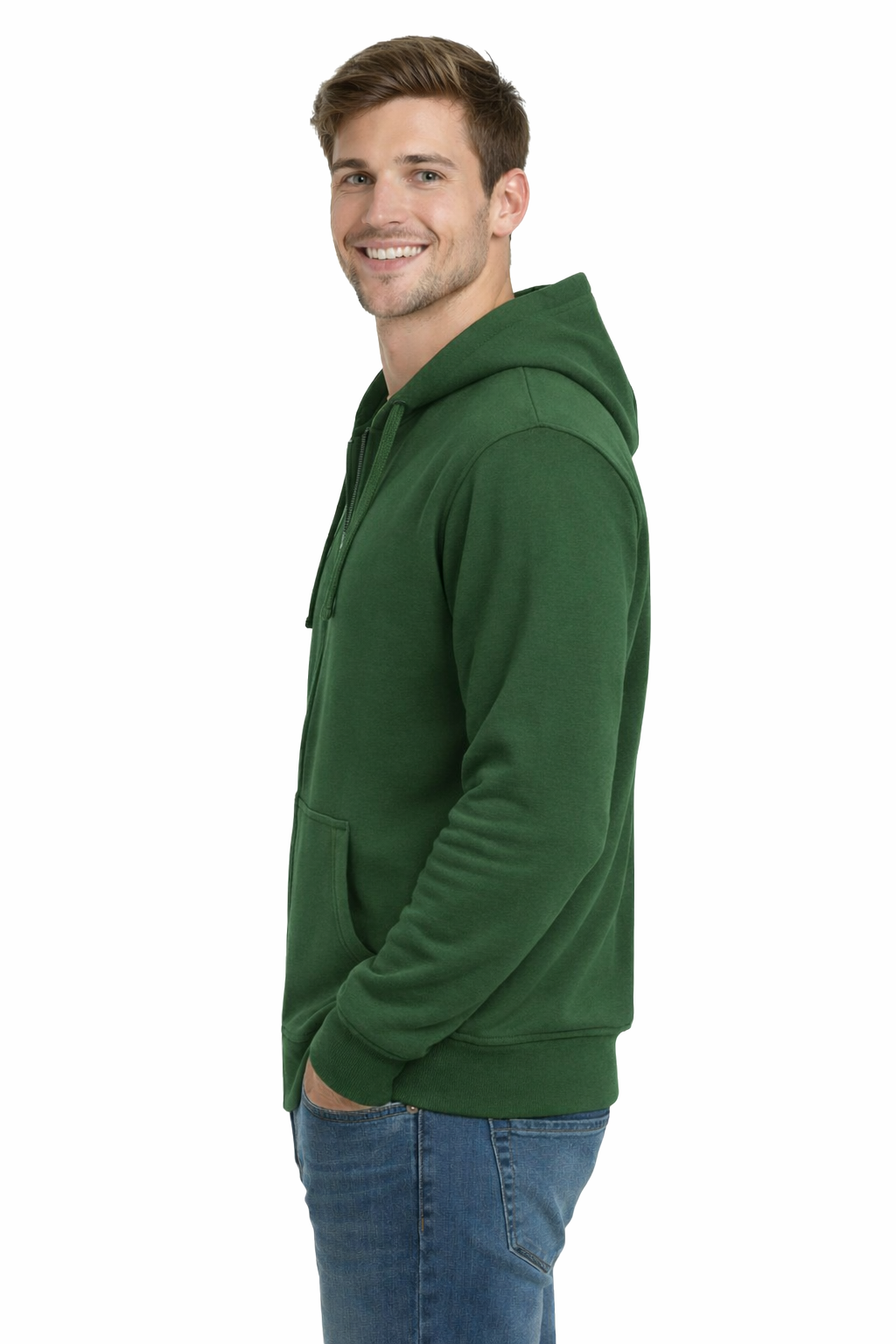 Hanorac bărbați cu fermoar și glugă, verde sticlă