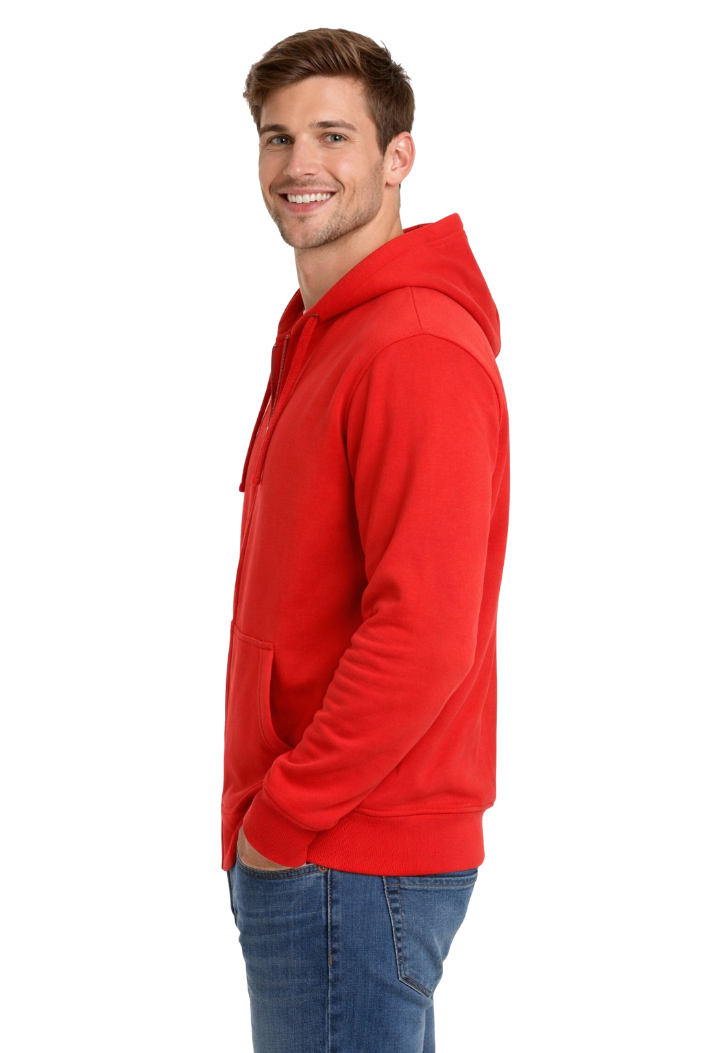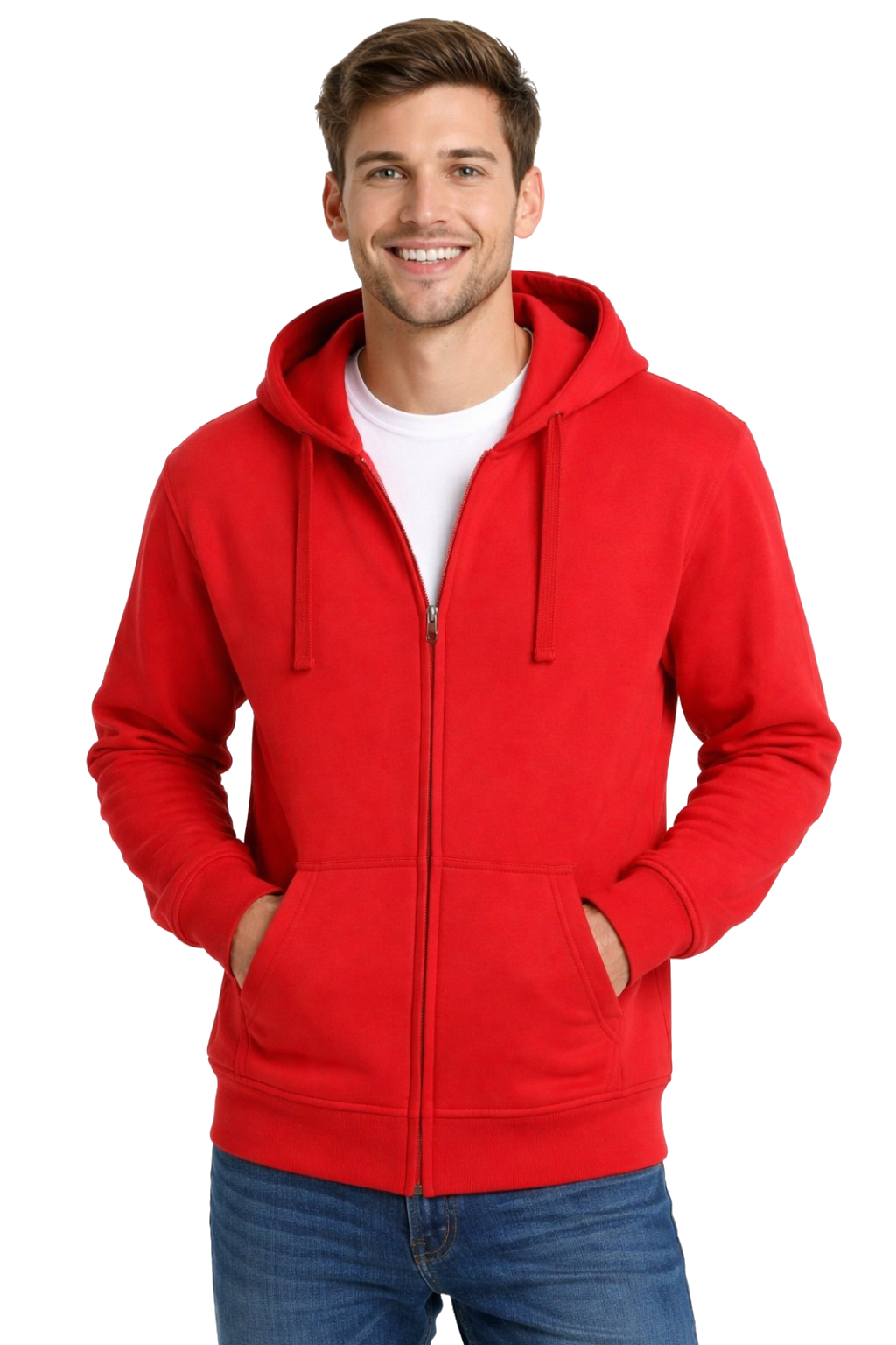 Bluza de bărbat roșie cu glugă – închidere cu fermoar
