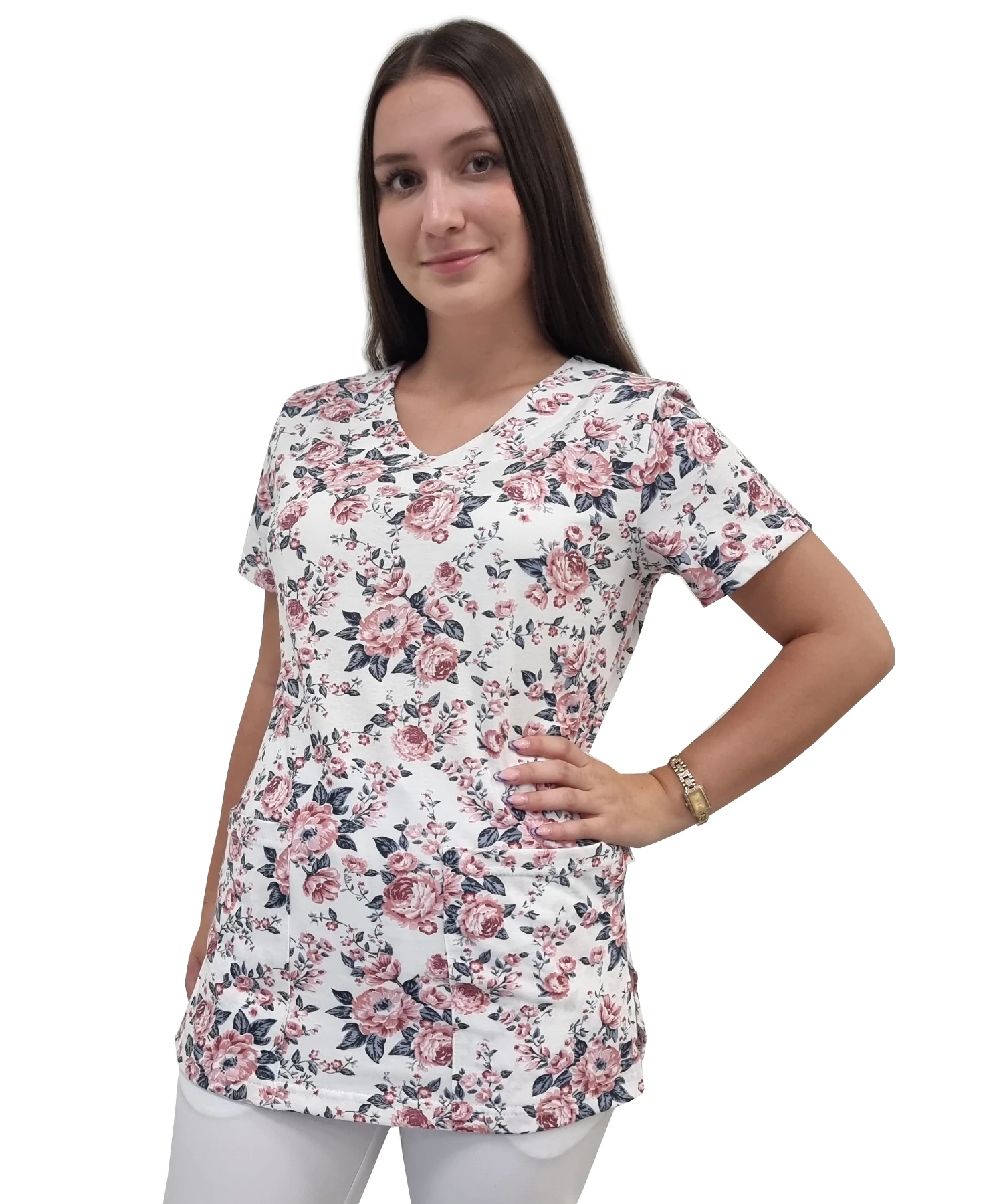 Fustă medicală feminină cu modele din colecţia ELASTIC BLOOM este o vestimentaţie medicală deosebită, creată cu gândul la femeile care doresc să combine look-ul profesional cu un strop de stil și culoare. Realizată din 100% bumbac elastic, este aerisită, ușoară și extrem de confortabilă la purtare. Modelul W11 face ca fusta să se distingă în comparație cu modelele clasice, aducând bucurie și energie în munca de zi cu zi.