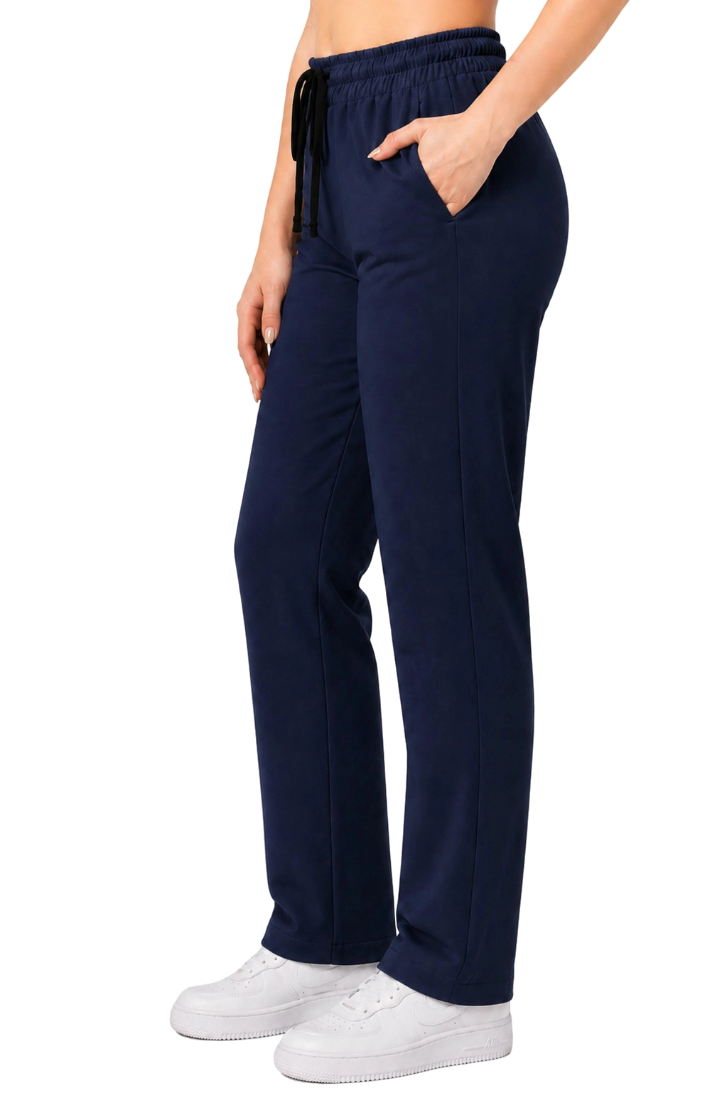 Pantaloni medicali pentru femei, cu picior drept clasic - CASUAL PREMIUM, culoare bleumarin închis.