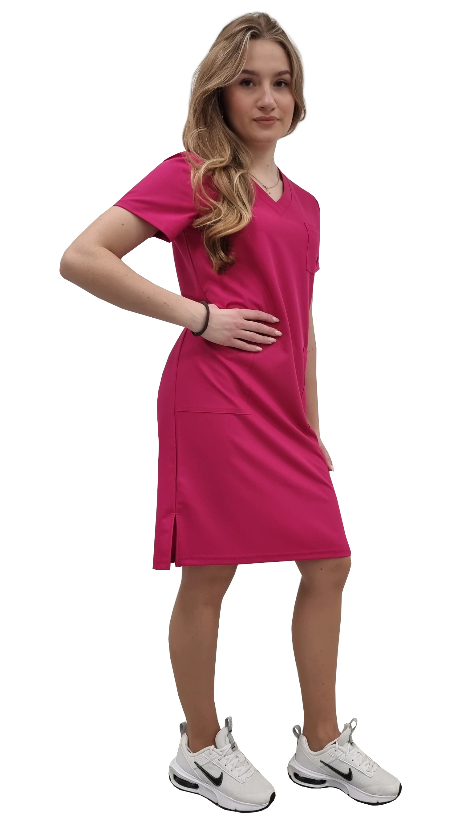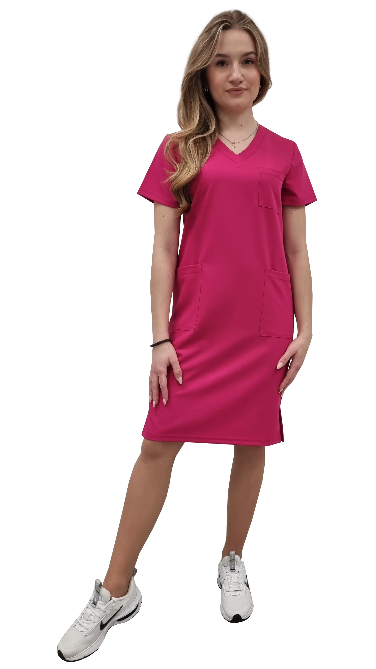 Rochia din colecția CASUAL PREMIUM este una dintre piesele obligatorii în garderoba fiecărei doamne care lucrează în domeniul medical și nu numai. Fiecare produs din această colecție este confecționat din țesătură elastică de înaltă calitate de 200 g/m2. Rochia este extensibilă în 4 direcții, respirabilă, ușoară, foarte plăcută în contact cu pielea a fost creată pentru mișcarea liberă și confortul lucrătorilor, adaosul de viscoză conferă țesăturii moliciunea dorită, ceea ce face ca țesătura să fie ușor de întreținut. Aprovizionează două buzunare adânci la nivelul șoldurilor, un buzunar la piept și un decolteu în V. Variațiile de culoare și croiala unică vor face ca rochia ta să iasă în evidență. Rochia este ideală pentru zilele care implică multă activitate fizică la locul de muncă, oferind un nivel ridicat de confort datorită permeabilității aerului. Elasticitatea țesăturii vă va permite să lucrați confortabil și să vă potriviți perfect corpului în fiecare zi..