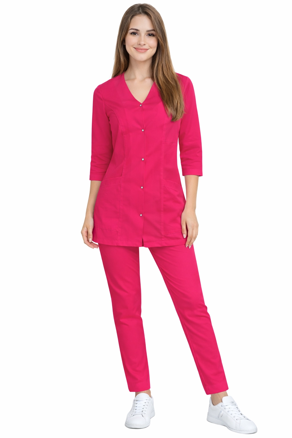 Set cosmetic medical cu jachetă cu mâneci 3/4 CASUAL PREMIUM amarant