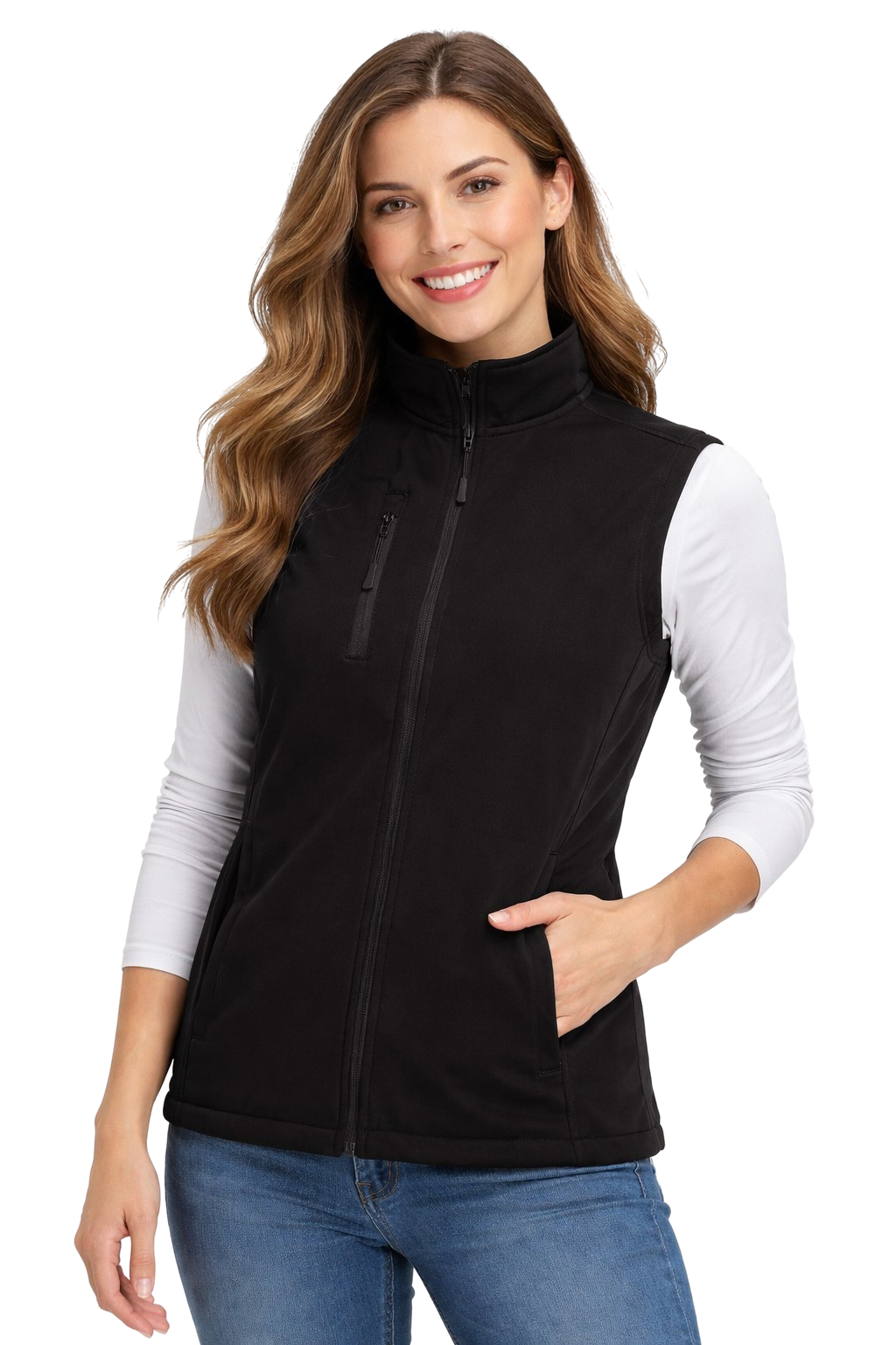 Vestă fără mâneci pentru femei, softshell, de culoare neagră